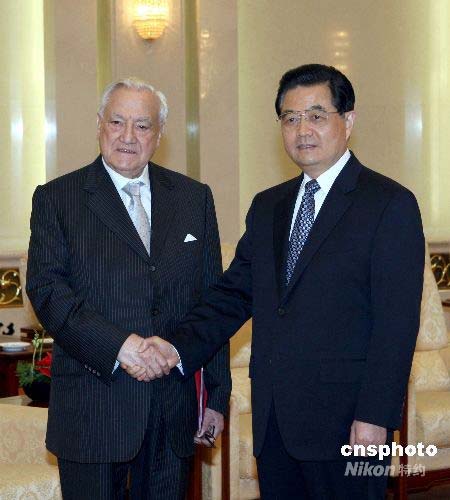 胡锦涛会见法国参议院议长蓬斯莱一行
