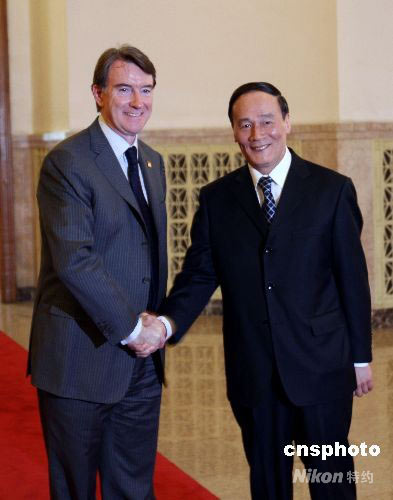 四月二十五日,首次中欧经贸高层对话在北京人民大会堂举行。中国国务院副总理王岐山和欧盟贸易委员曼德尔森共同主持对话。这将成为中欧间最高级别的对话平台。 中新社发 任海霞 摄