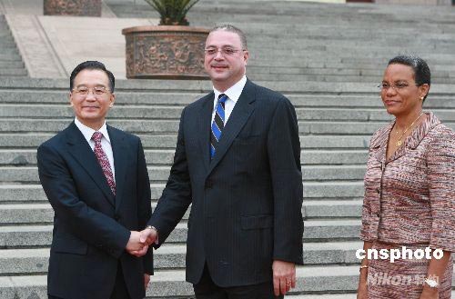 图:温家宝欢迎巴巴多斯总理访华