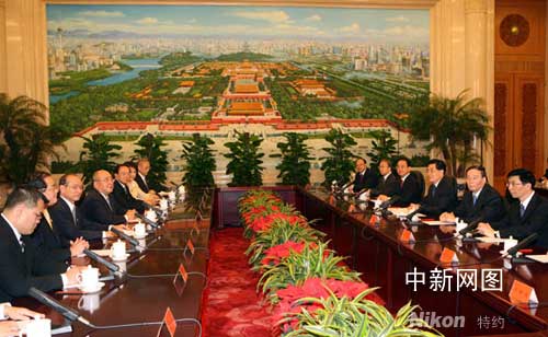 图:胡锦涛与吴伯雄在北京举行会谈