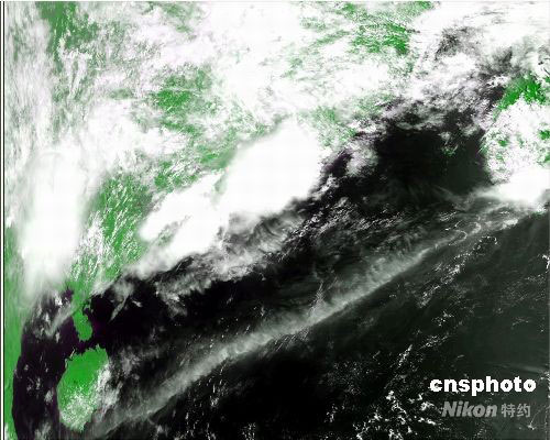 5月29日上午10点16分,广州气象卫星地面站成功接收到第一幅风云三号01星的HRPT(甚高分辨率)云图,图为该卫星拍回的照片。中新社发 杨绮薇 摄