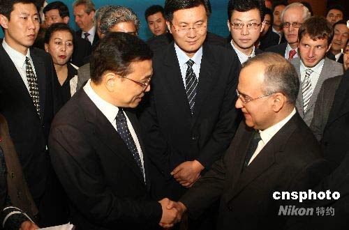6月26日,中国外交部在北京钓鱼台国宾馆举办抗震救灾答谢招待会。李克强代表中国政府和人民,感谢各国政府、人民和国际组织以及各驻华外交机构在四川汶川大地震后给予中国人民的深切慰问、大力支持和无私援助。170多位外国驻华使节和国际组织驻华机构代表出席了招待会。中新社发 盛佳鹏 摄