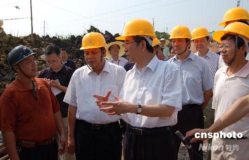 7月28日,广西百色“7·21”煤矿透水事故进入第8天,广西壮族自治区主席马飚(右二)再次从南宁赶赴百色指挥抢险救援。该事故发生时57人被困,其中21人获救,7人遇难,目前还有29人被困井下。中新社发 刘万强 摄