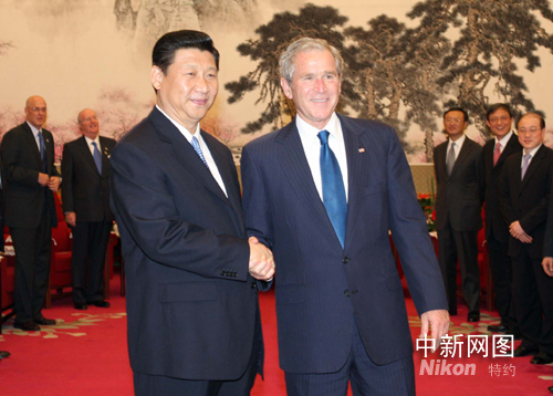 8月10日,中国国家副主席习近平在北京中南海会见美国总统布什一行。 中新社记者 廖文静 摄
