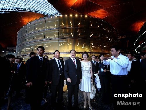 8月10日,海协会会长陈云林陪同中国国民党名誉主席连战参观国家大剧院。随后他们观看了丹麦皇家芭蕾舞团经典舞剧《仙女》、《拿波里》片段。中新社发 廖攀 摄