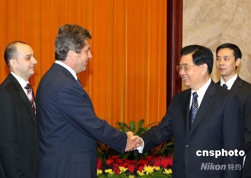 图:胡锦涛会见保加利亚总统珀尔瓦诺夫