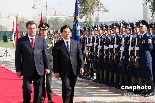 塔吉克斯坦总统举行仪式欢迎中国国家主席胡锦涛