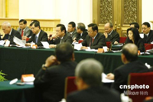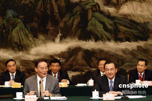 8月28日,2008年台商座谈会在北京人民大会堂举行。国务院副总理王岐山和国务院20多个主要部门负责人及60多位台湾工商界人士、大陆台商代表参加座谈。中共中央台办、国务院台办主任王毅主持会谈。中新社发 盛佳鹏 摄
