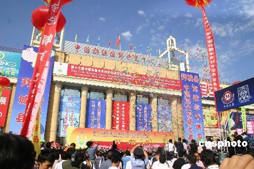 9月1日,第十七届乌鲁木齐对外经济贸易洽谈会(简称:乌洽会)开幕,乌洽会从今年起升级为国家级区域性国际展会,共有43个国内外客商交易团和8个国家和地区组成的10多个代表团参会。上万名国内外展商与会。本届乌洽会展览规模增加到1.88万平方米,创历史新高。已汇集外资外经及贸易项目27个,金额达11.3亿美元。中新社发 缑烨 摄