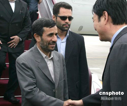 9月6日,伊朗总统艾哈迈迪-内贾德飞抵首都国际机场,前来出席北京残奥会开幕式及相关活动。中新社发 富田 摄