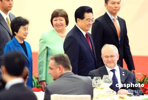 图:胡锦涛举行宴会欢迎北京残奥会贵宾