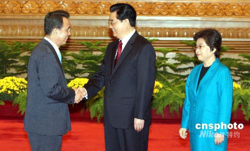 图:胡锦涛夫妇欢迎韩国总理韩升洙夫妇