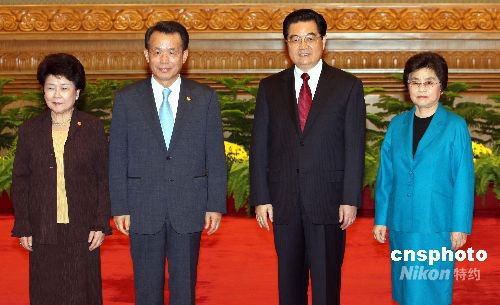 胡锦涛夫妇与韩国总理韩升洙夫妇合影。