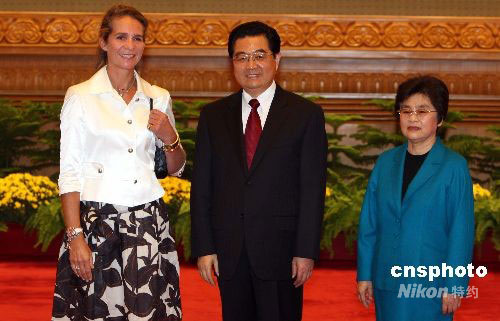 图:胡锦涛夫妇欢迎出席北京残奥会的西班牙公主爱莱娜