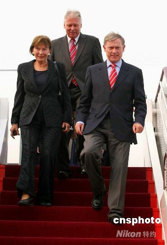 图:德国总统克勒抵京出席北京残奥会开幕式