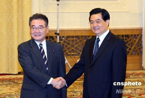9月7日,中国国家主席胡锦涛在北京人民大会堂会见日本自民党前干事长、日中友协会长加藤纮一。中新社发 廖文静 摄