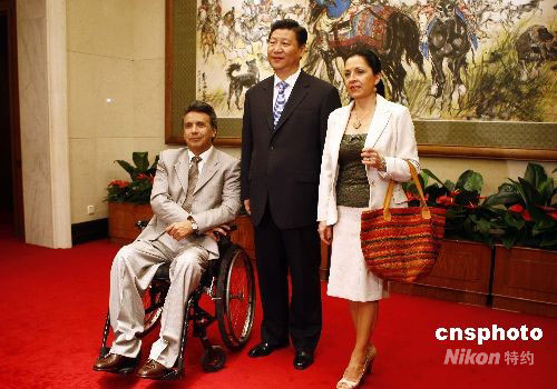 9月8日,中国国家副主席习近平在北京钓鱼台国宾馆会见厄瓜多尔副总统莫雷诺。中新社发 盛佳鹏 摄