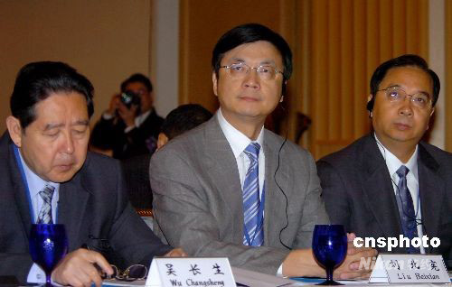 九月十六日,由中国日报社与日本“言论NPO”组织主办的第四届“东京-北京”论坛在东京开幕。正值日本政局扑朔迷离、中日关系备受关注之际,与会两国政要纷纷强调中日关系向前发展的潮流将不会改变。中新社总编辑刘北宪(中)出席论坛开幕式,并作为中国媒体代表在论坛媒体分会上发言。中新社发 朱沿华 摄