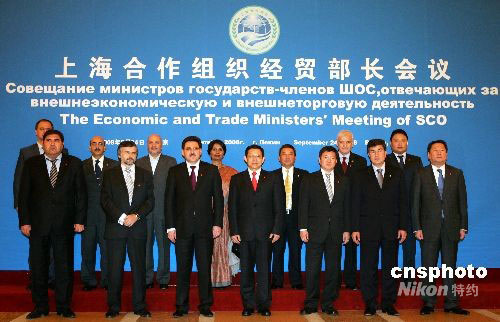 9月24日,上海合作组织经贸部长第七次会议在北京召开。会议就落实今年8月杜尚别峰会的经贸共识,做好10月底将在阿斯塔纳举行的总理会议的相关准备工作充分交换了意见,审议并通过了重新修订的《〈上海合作组织成员国多边经贸合作纲要〉落实措施计划》,决定优先重点落实交通、电信、现代技术、农业、能源等领域的合作项目,进一步加强各专业工作组工作,继续发挥实业家委员会和银联体在落实合作项目中的作用。中新社发 富田 摄