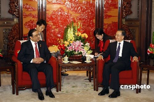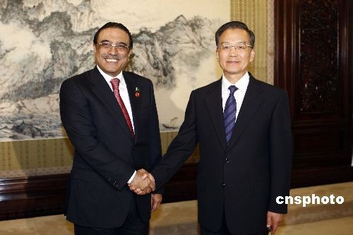 图:中国总理温家宝会见巴基斯坦总统扎尔达里