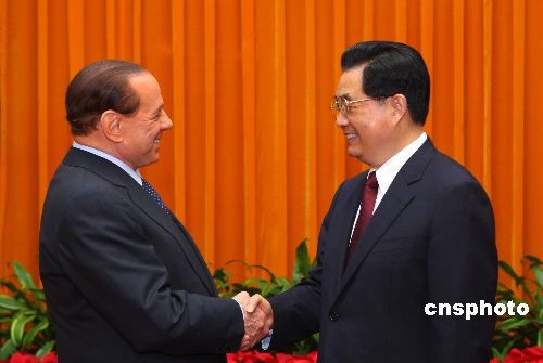 图:胡锦涛会见意大利总理贝卢斯科尼