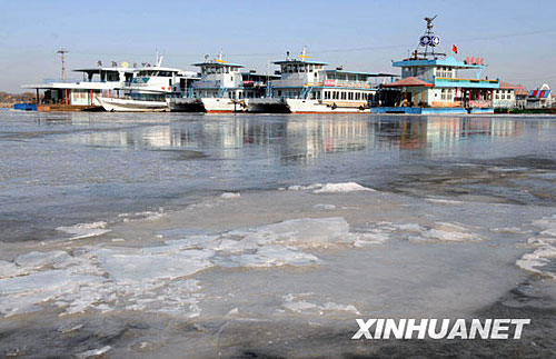 11月16日,哈尔滨市轮渡公司的所有渡客船全部安全返航,停泊在哈尔滨市道里区九站船坞。当日,哈尔滨市轮渡公司渡客408船带着码头船,从哈尔滨市道外码头返回到道里九站船坞,这标志着运行在松花江上的所有客货轮全线停航。据了解,受寒冷空气影响,松花江沿线气温骤降,江水开始结冰进入封江期。 新华社发(张清云 摄)