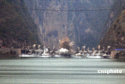 11月22日16时48分,随着三声巨响,重庆市巫山县龙门大桥旋转180度落入水中,完成历史使命。而由于今年库区实施175米试验性蓄水,因江水猛涨被龙门大桥“封锁”的大宁河小三峡也成功“解锁”,游船又可出入无碍。