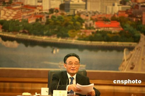 12月15日下午,第十一届全国人大常委会第十五次委员长会议在北京举行,全国人大法律委员会主任委员胡康生就防震减灾法、专利法、刑法、社会保险法、保险法修订草案和侵权责任法草案主要问题修改情况做汇报,吴邦国委员长主持会议。中新社发 任晨鸣 摄