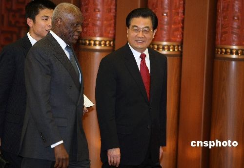 12月17日晚,中国国家主席胡锦涛在北京人民大会堂举行仪式,欢迎安哥拉共和国总统若泽·爱德华多·多斯桑托斯访华。多斯桑托斯总统是应中国国家主席胡锦涛的邀请,12月16日晚乘专机抵达北京,开始对中国进行为期4天的国事访问。中新社发 任晨鸣 摄