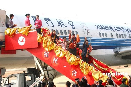 12月18日,大陆首批地方媒体赴台驻点记者4人搭乘福州直飞台北的首航班机赴台。经由海峡两岸有关方面同意,此次大陆首批地方媒体赴台湾驻点记者,分别是福建日报记者林娟、海峡都市报记者翁芝光和东南卫视记者叶青林、黄晟等4人,将在岛内进行为期3个月的驻点采访。 中新社发 祝敏松 摄