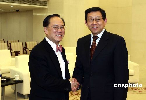12月18日,中国商务部部长陈德铭在北京会见了香港特区行政长官曾荫权,就两地经贸等话题进行交流。中新社发 杜洋 摄