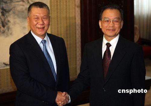 12月19日上午,国务院总理温家宝在北京中南海紫光阁会见前来北京述职的澳门特别行政区行政长官何厚铧。中新社发 任晨鸣 摄