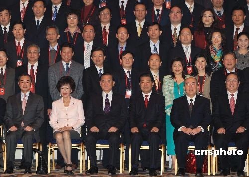 图:贾庆林与出席两岸经贸文化论坛嘉宾合影