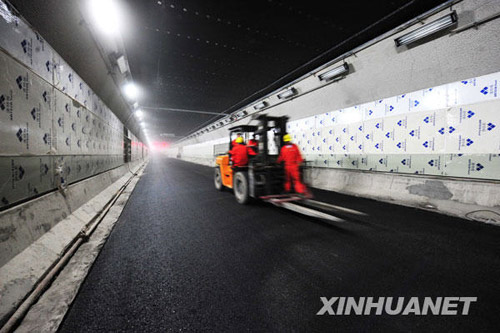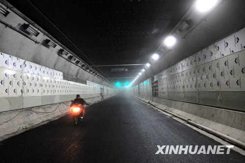 被誉为“万里长江第一隧”的武汉长江隧道将于12月28日试通车。武汉长江隧道位于武汉长江大桥和长江二桥之间,全长3.6公里,双线4车道。该工程于2004年11月破土动工,是我国第一条开建、最先贯通的长江公路隧道。 杜华举 摄