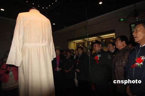 2008年12月25日,毛泽东有73个补丁的睡衣在韶山毛泽东遗物馆展出。 中新社发 郭国权 摄