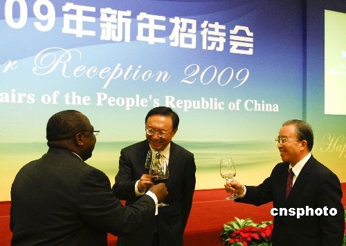 12月28日,中国外交部部长杨洁篪在北京钓鱼台国宾馆举行“外交部2009年新年招待会”,招待各国驻华使节和国际组织代表及其配偶。国务委员戴秉国、有关部门负责人及中外来宾400余人出席。中新社发 盛佳鹏 摄