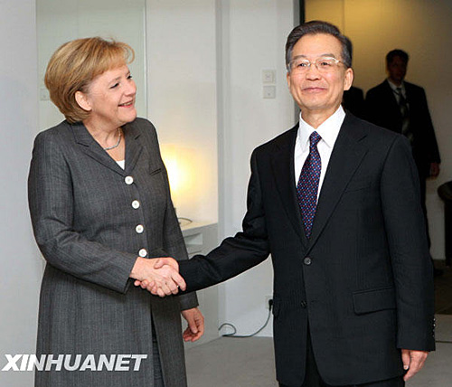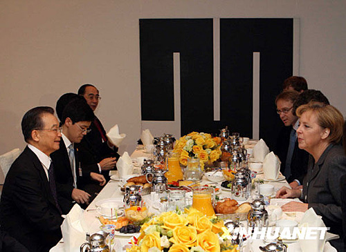 1月29日,正在德国进行正式访问的中国国务院总理温家宝,应邀在柏林德国总理府与德国总理默克尔共进早餐。兰红光 摄