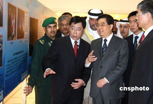 当地时间2月11日上午,正在沙特进行国事访问的中国国家主席胡锦涛,来到利雅得水泥公司,参观由中材国际承建的水泥生产线项目。中新社发 齐彬 摄
