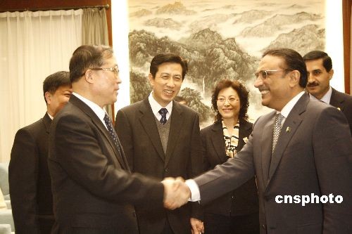 1月20日至23日,巴基斯坦总统扎尔达里将先后访问湖北和上海,考察中国水利、农业、金融等领域发展情况。图为湖北省省长李鸿忠会见扎尔达里总统。中新社发 艾启平 摄