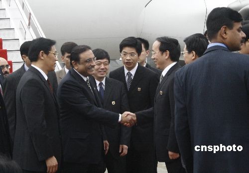 2月22日中午,在湖北进行友好访问的巴基斯坦总统扎尔达里乘机抵达湖北宜昌市。在宜昌市期间,扎尔达里将与中国三峡总公司举行项目会谈,并参观三峡工程纪念馆和三峡大坝等。图文扎尔达里总统与宜昌市长李乐成握手。中新社发 艾启平 摄
