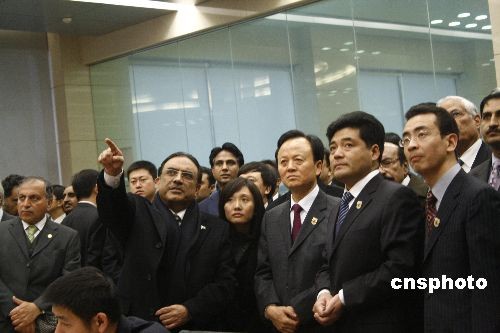 2月22日,应邀访华的巴基斯坦总统扎尔达里,在中国三峡总公司总经理李永安等陪同下参访了三峡工程,并希望通过这次考察访问,推动巴基斯坦与湖北在水电开发、水利建设等领域的合作。中新社发 艾启平 摄