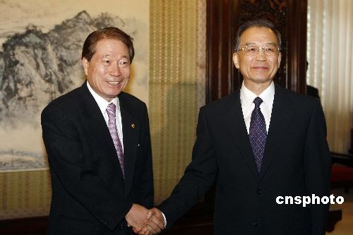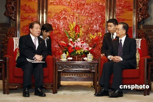 2月24日,中国国务院总理温家宝在北京中南海紫光阁会见韩国外交通商部长官柳明桓。中新社发 盛佳鹏 摄