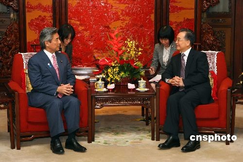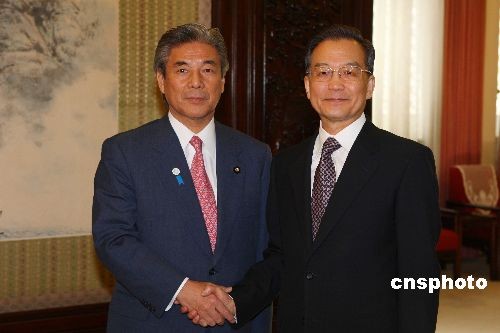 3月1日,中国国务院总理温家宝在北京中南海紫光阁会见日本外相中曾根弘文。中新社发 盛佳鹏 摄