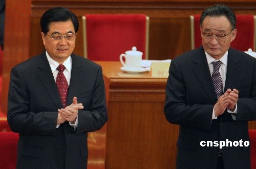 3月3日下午,全国政协十一届二次会议在北京人民大会堂开幕,胡锦涛、吴邦国等党和国家领导人出席。中新社发 任晨鸣 摄