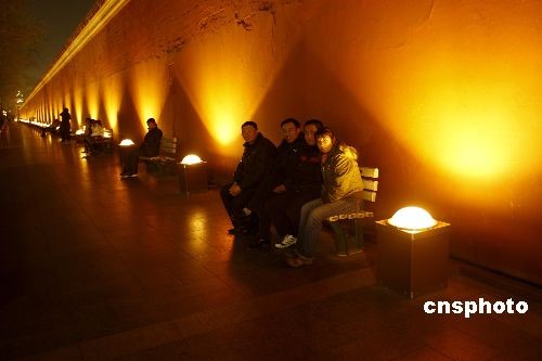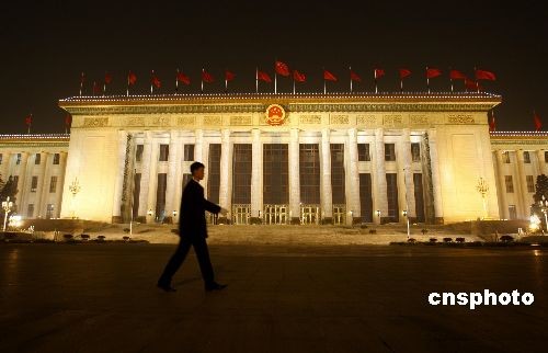 3月3日晚,北京天安门广场红旗飘扬,夜景璀璨迷人洋溢出一派喜庆祥和的气氛,游客沉醉在美丽的夜色中。中新社发 郑雄增 摄