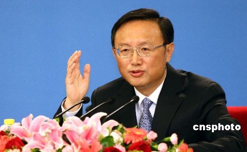 3月7日,十一届全国人大二次会议在北京人民大会堂举行记者会,外交部部长杨洁篪就中国的对外政策和对外关系答中外记者问。中新社发 杜洋 摄