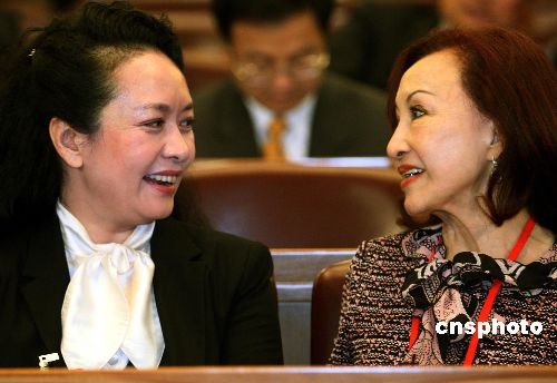 3月7日下午,全国政协十一届二次会议举行第二次全体大会,出席会议的彭丽媛与郑明明轻松交谈。中新社发 宋吉河 摄