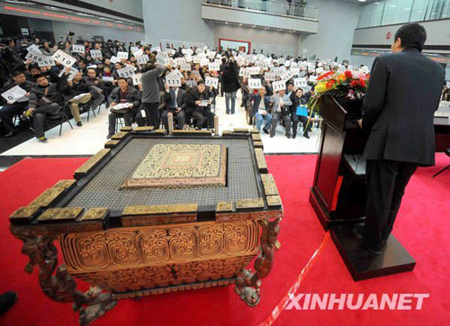 3月8日,“2008北京第29届奥运会开幕式演出道具‘缶’专场拍卖会”在北京产权交易所落槌。首个标的共十个缶以1.3万元总价起拍,经过近百轮激烈竞价,最终以70.6万元被347号买家竞得。据介绍,当日有1000只缶约53个标的投入竞拍,共有439家单位和个人报名参与了现场竞买,52名竞买人以5244.7万元的总价拍走1000个奥运缶,单个均价约5.2万元,较0.11万元的单个起拍均价而言,身价大增46倍。此次拍卖会创造了奥运物资拍卖历史上拍卖持续时间最长、竞买人最多、竞价轮次最多、溢价率最高4个纪录。