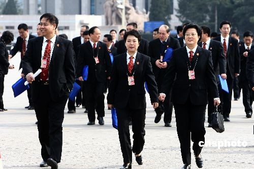 3月10日,最高人民法院的法官们前往北京人民大会堂,旁听最高人民法院院长王胜俊、最高人民检察院检察长曹建明所作工作报告。当日,第十一届全国人民代表大会第二次会议在人民大会堂举行第三次全体会议。中新社发 杜洋 摄