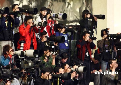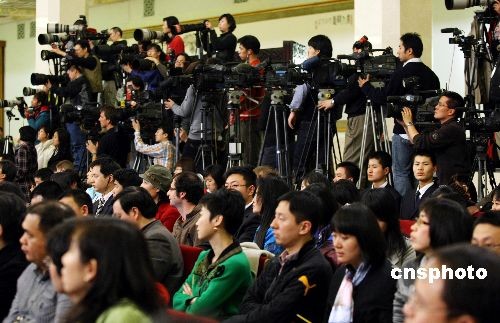 3月13日上午10时,国务院总理温家宝应十一届全国人大二次会议大会发言人的邀请,在人民大会堂与采访大会的中外记者见面并回答记者提出的问题。众多摄影记者“长枪短炮”关注总理发布会。